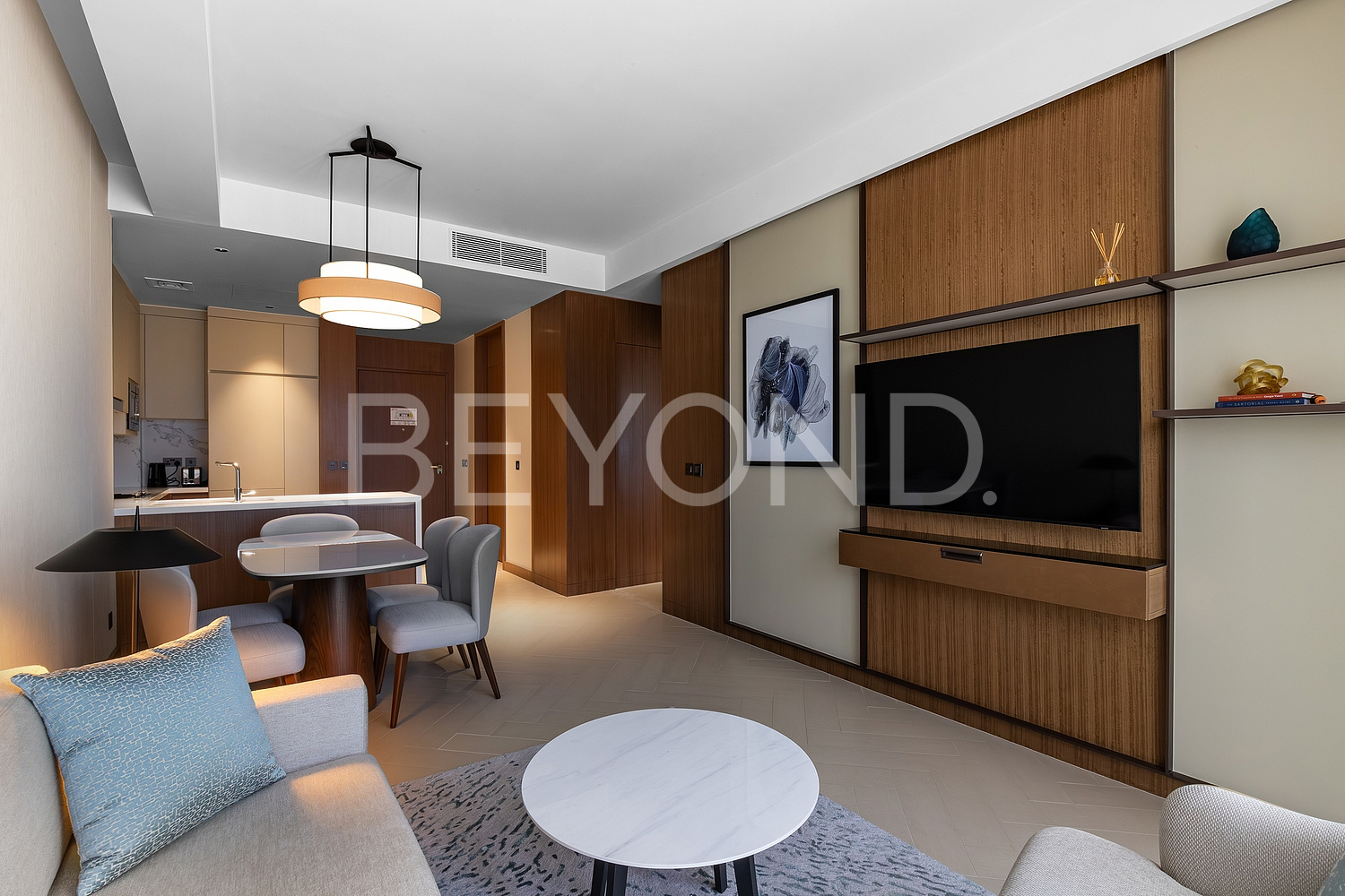 Квартира отличается тщательно продуманным дизайном, теплые тона и деревянная отделка создают обволакивающее пространство уюта, которое обеспечивает естественный баланс городской жизни, привнося атмосферу и гламур Downtown Dubai в ваш дом.