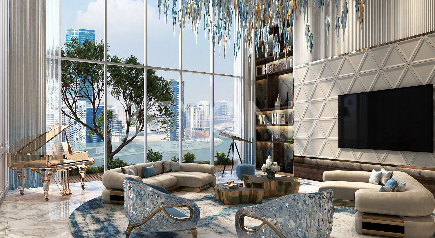 Просторные апартаменты на 13 этаже c оформлением от ювелирного бренда de Grisogono в элитном комплексе Chic Tower в деловом районе Business Bay общей площадью 95.92 кв. м. Апартаменты с просторной кухней-гостиной и собственным панорамным балконом. В проекте Chic Tower предусмотрено множество преимуществ для владельцев, включая 50-метровый бассейн, спортивный зал с панорамным видом, зоны отдыха с фонтанами, салон красоты и спа-центр.