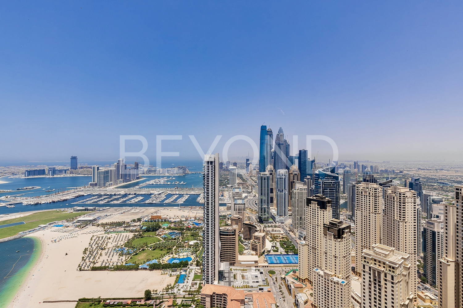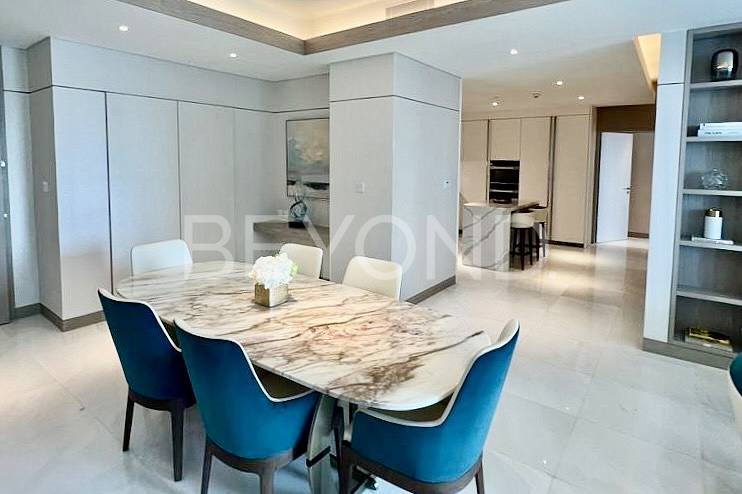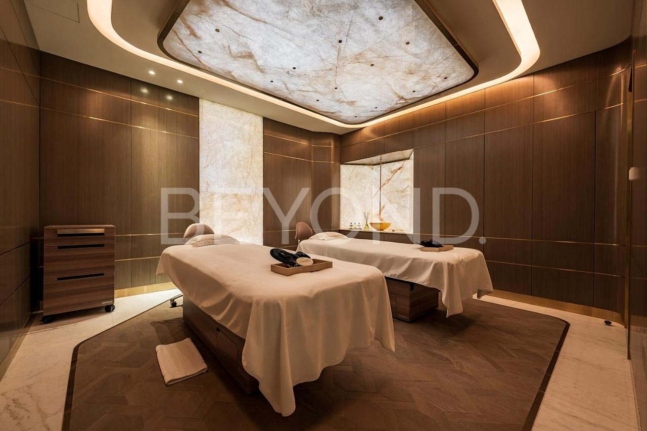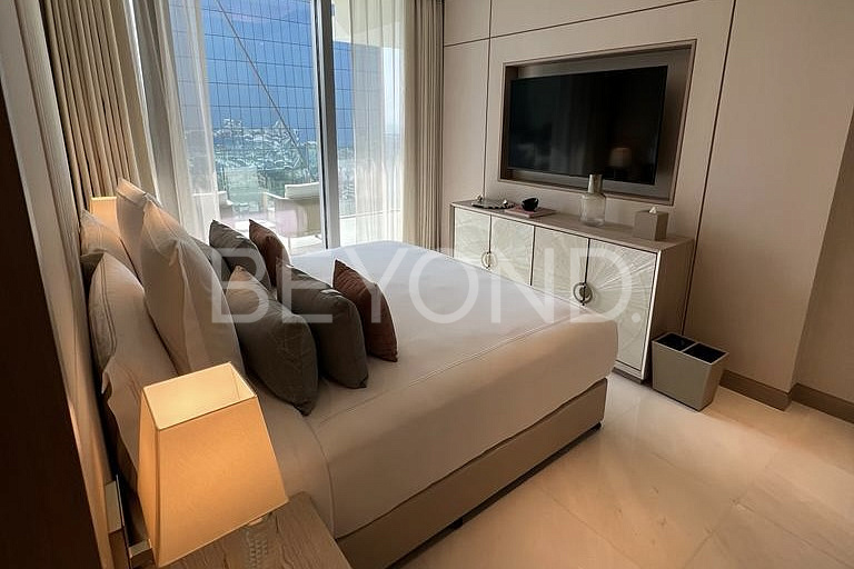 На 25 этаже комплекса предлагается к продаже видовая трехкомнатная квартира. Апартамент с панорамными окнами и балконами с потрясающим видом на Арабский залив, колесо обозрения и Palm Jumeirah полностью меблирован. Кухни и ванные комнаты оснащены высококлассной техникой и премиальной сантехникой соответственно. Интерьер выполнен в мягкой бежевой гамме, которая дополняется натуральным деревом и камнем.