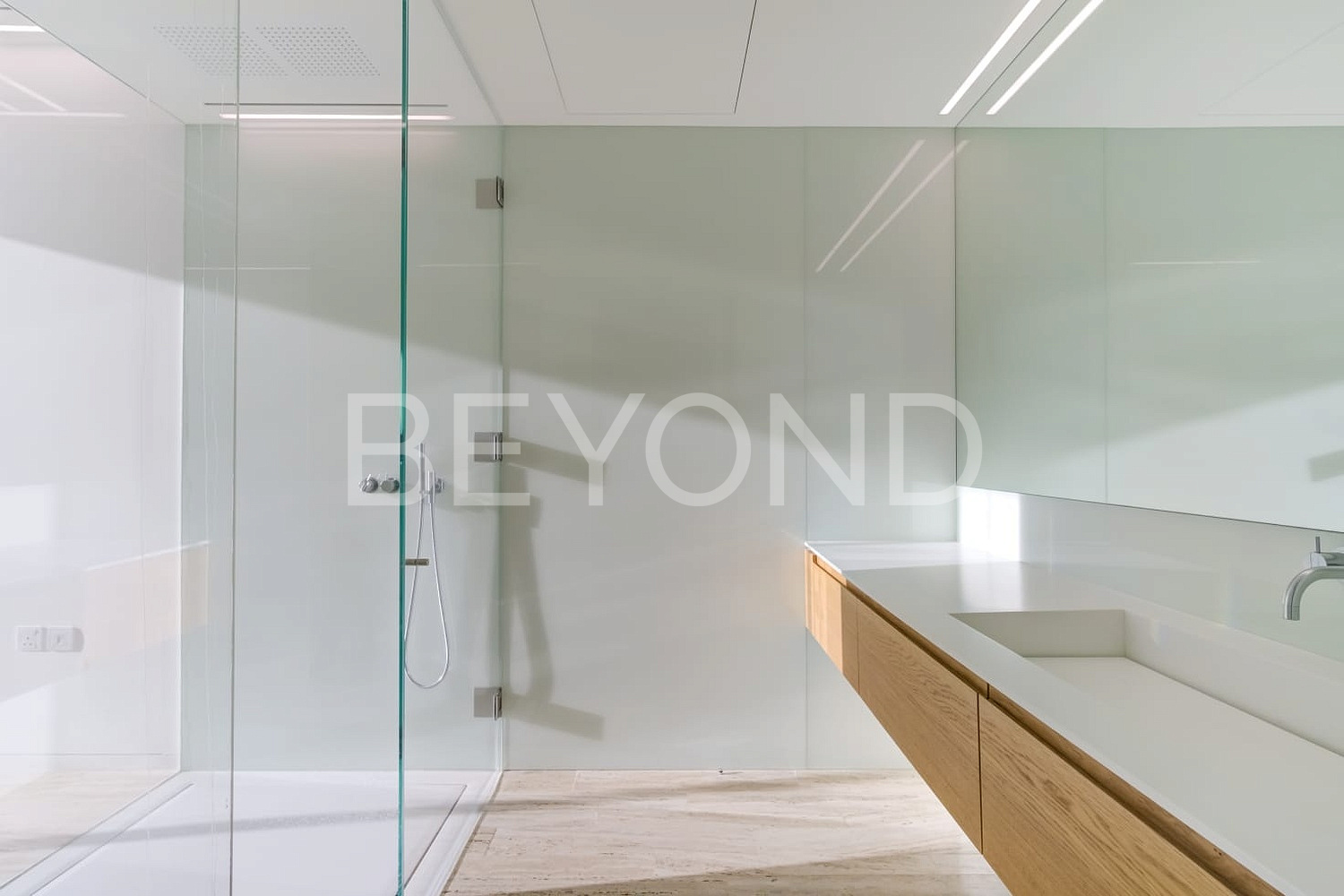Пентхаус предлагается с полной отделкой премиального класса. Мебель для кухни и ванных — итальянского бренда Valcucine, техника — Gaggenau, наполнение гардеробных и шкафов — Rimadesio, окна — Sky-Frame, сантехника — Lagares, Vola, Cartel Laufen, Geberite.