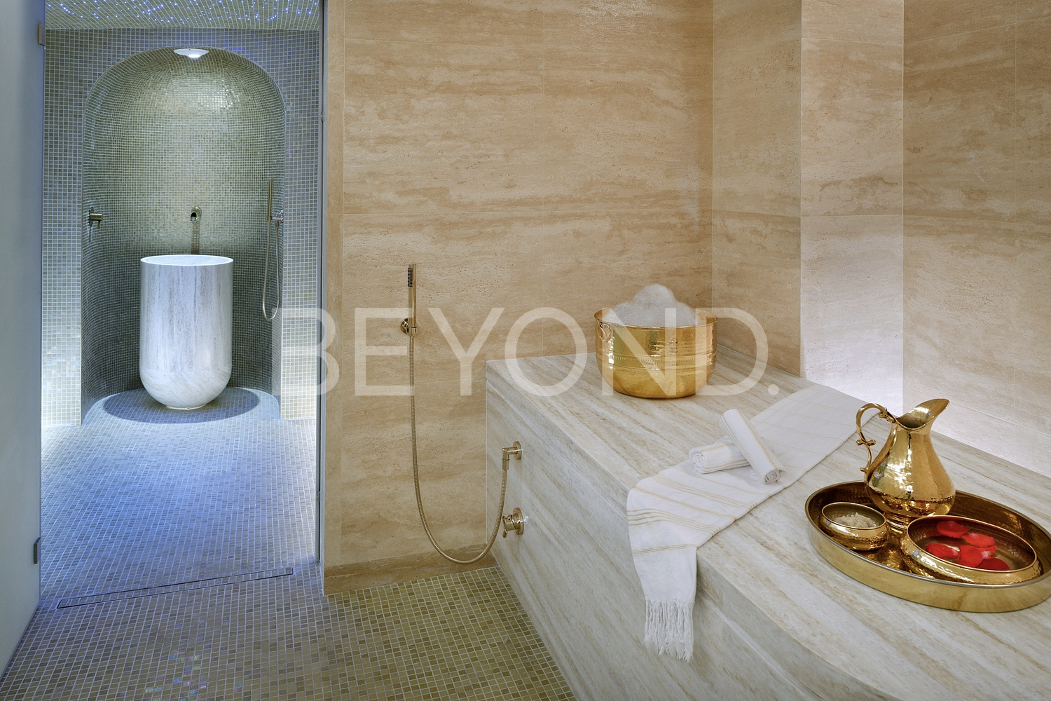 Вилла полностью меблирована, имеет собственный лифт, комнаты для водителя и горничной, гараж, лаундж-зону с отдельным входом, гардеробные, три комнаты для гостей с индивидуальными ванными, большую зону спа, которая, в свою очередь, включает в себя: хамам, душевые, спа-ванну, зону массажа на два стола, мраморный стол для спа-процедур.
