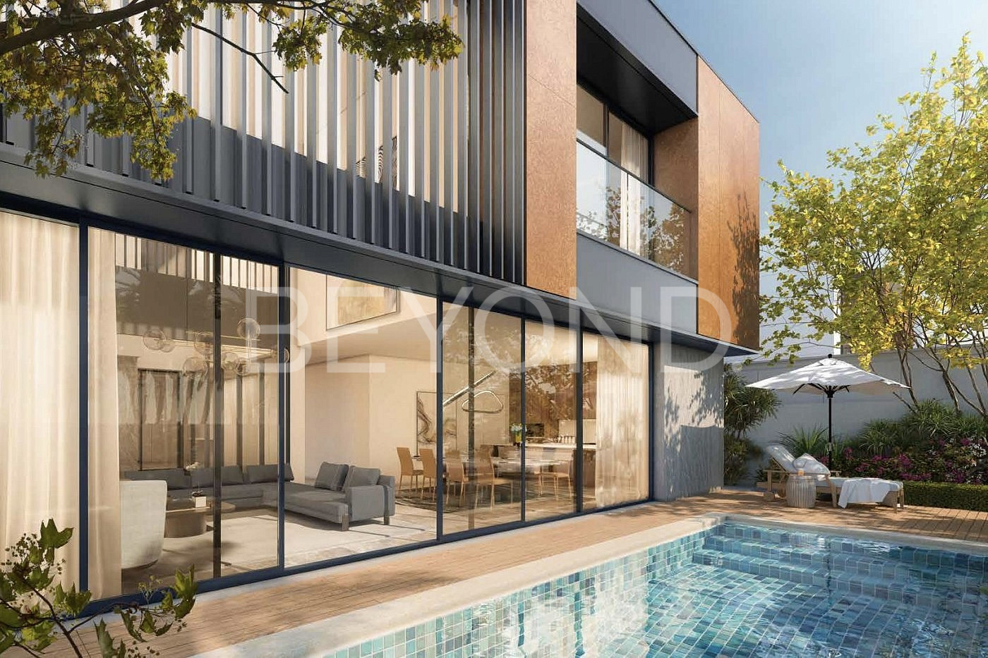 К продаже предлагается потрясающая вилла с 5 спальнями, собственным открытым бассейном, просторным паркингом на 4 автомобиля, комнатами для водителя и прислуги. Альдар предлагает высококачественную отделку под ключ, два варианта цветового оформления жилых и обеденных зон: в холодных и теплых тонах. Внутри домов доступны два уровня оснащения — Standard и Premium, которые отличаются отделкой и оборудованием. Пакет Premium включает систему «Умный дом», которая содержит дверной звонок с камерой, главную дверь с кнопочным управлением и ключом, а также две наружные камеры наблюдения. Пакет Standard предоставляет лишь основные функции системы «Умный дом».