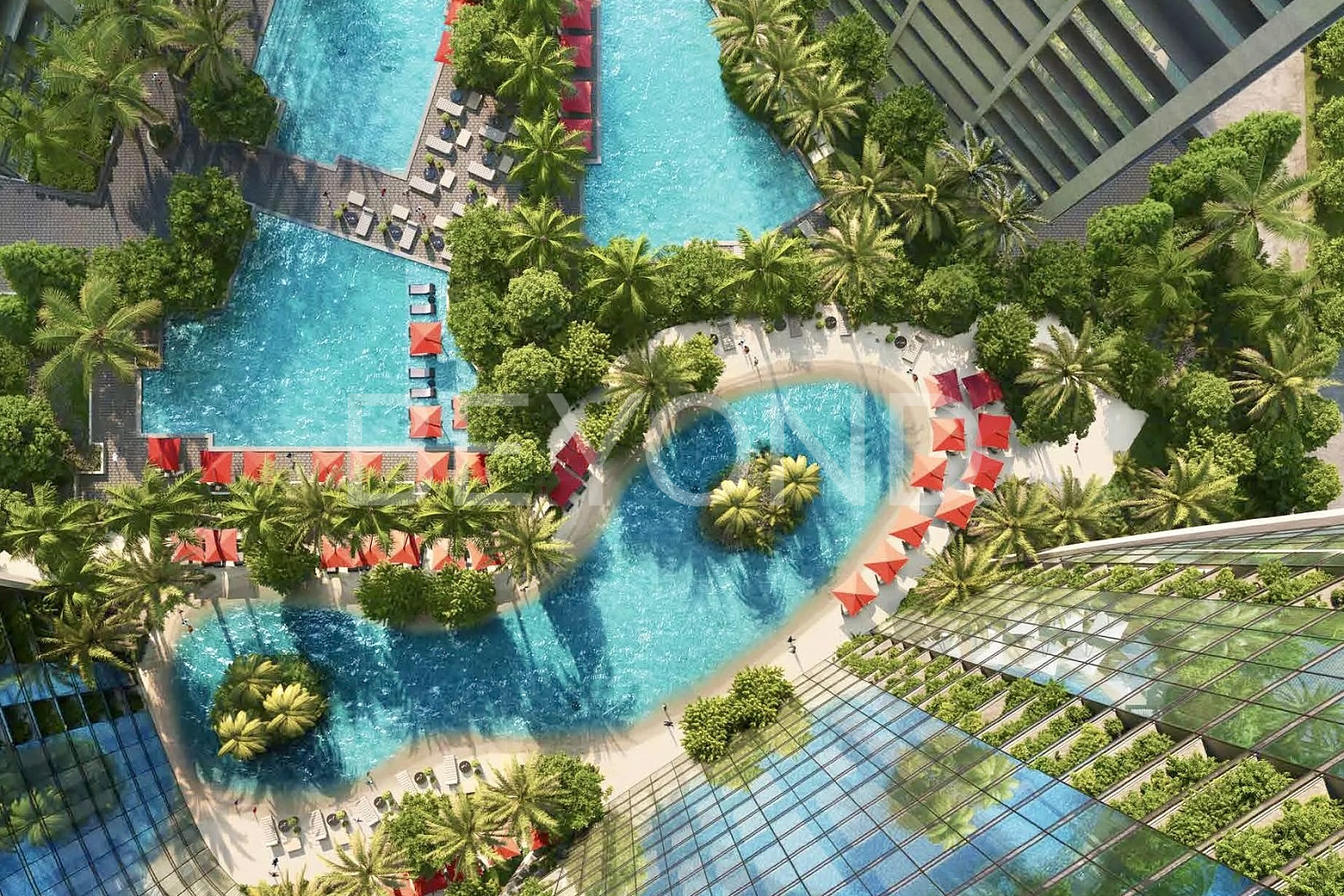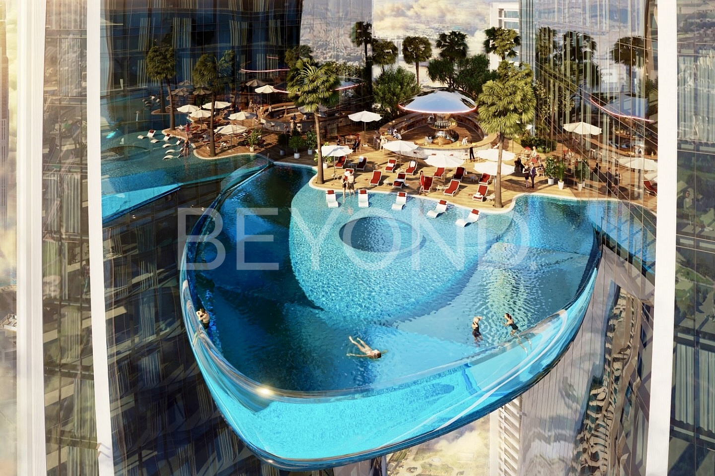 В центре комплекса будет расположен бассейн, отделка которого создаст ощущение бесконечности. Поверхность бассейна будет обладать алмазным блеском в ночное время. Также в проекте предусмотрена стеклянная гора с подсветкой, имитирующая эффект туманного леса. Всего в жилой башне Safa Two будет 4 бассейна, оформленных в пляжном стиле, чтобы создать атмосферу от курортного отдыха.