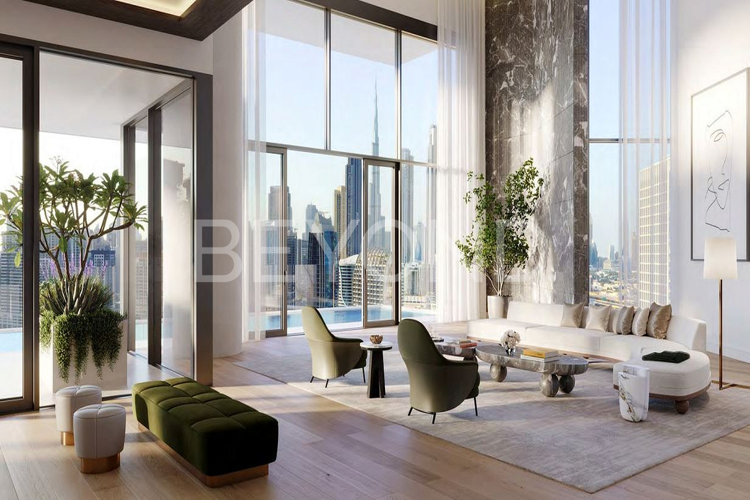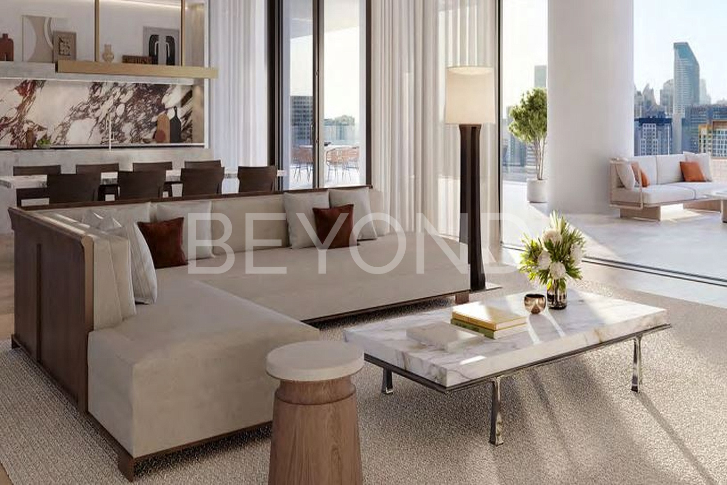 Предлагается к продаже полностью меблированные апартаменты с тремя спальнями и двумя террасами, площадью 556 кв. м. Панорамные окна позволят наслаждаться захватывающими видами на Marasi Bay, Burj Khalifa и знаменитый пейзаж Downtown Dubai. Планировка включает в себя: зону для персонала, кухню для повара, прачечную, три спальни с выходами на собственные террасы.