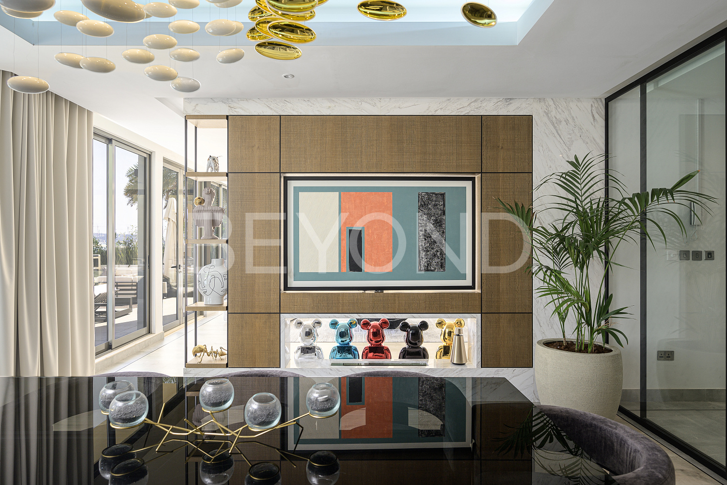 К продаже предлагается роскошная, полностью меблированная вилла на рукотворном острове Palm Jumeirah. Эта вилла с 4 спальнями, 4 ванными, уютным домашним кинотеатром, потрясающей зоной летней кухни и планировкой, которая предоставляет возможность оптимизировать пространство. Кухня, столовая зона и гостиная хорошо спроектированы с ясным разделением пространства, но при этом остаются единым целым благодаря изысканному декору и стилю. Очаровательные и стильные предметы искусства, такие как фигурки BearBrick, стеклянные и хрустальные люстры, декоративные настольные лампы, усиливают впечатление от современного интерьера и идеально сочетаются с отделочными материалами: мрамором, плиткой, деревом и стеклом. На первом этаже также есть кинозал для всей семьи, склад и прихожая, а четыре спальни расположены на втором этаже, три из которых имеют свою собственную ванную комнату. В мастер-спальне есть просторная гардеробная и потрясающая ванная с элементами мрамора и дерева.