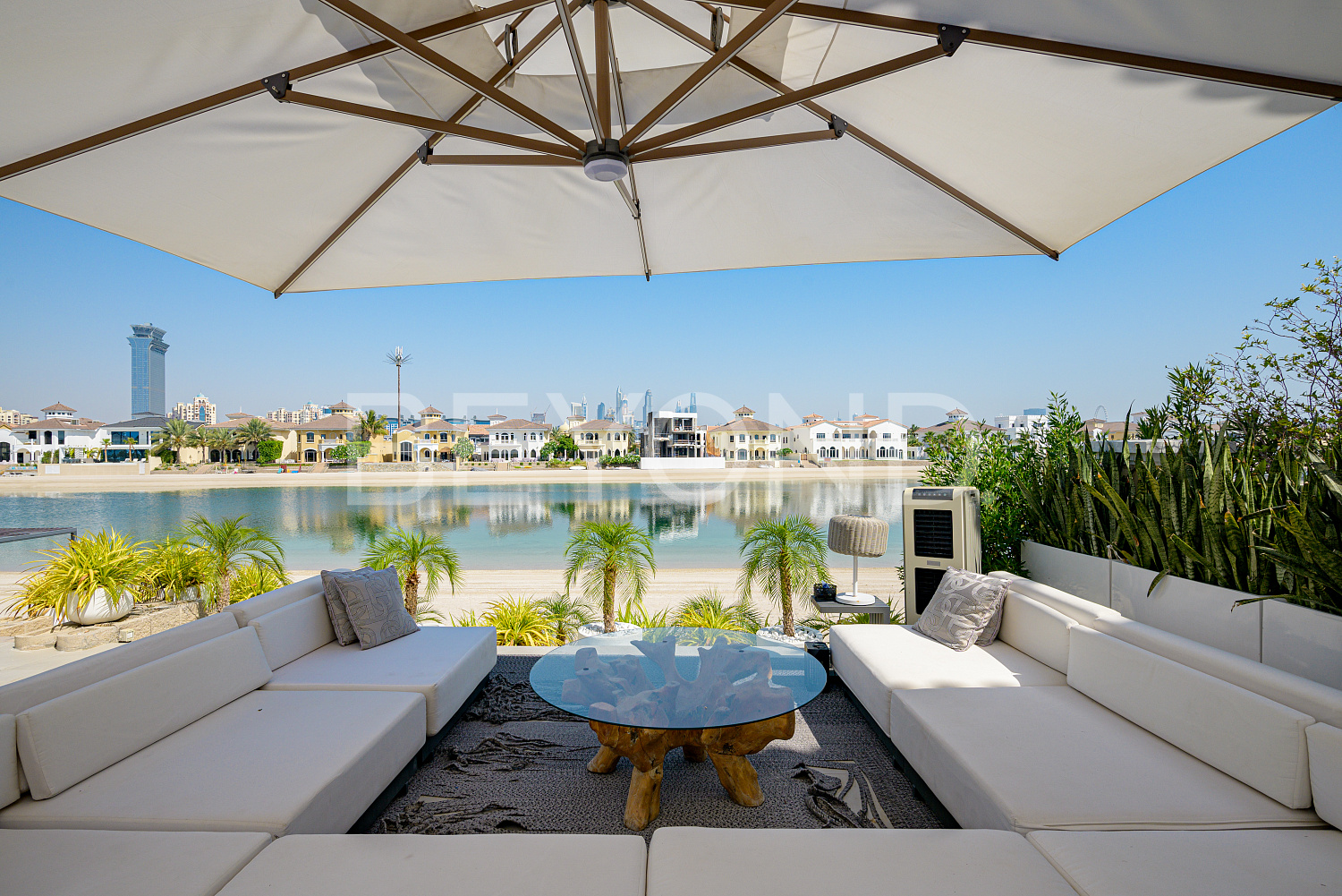 Вилла расположена на самом известном рукотворном острове Дубая — острове Palm Jumeirah, если точнее, на одном из крупнейших участков острова Garden Homes площадью впечатляющих 7757 кв. футов. С виллы открываются виды не только на воду, но и на впечатляющие небоскребы районов Дубая.